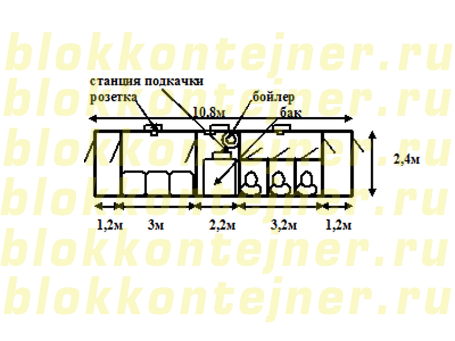 ГлавнаяПроекты Коммерческие предложения → Душевая, санузел из вагончика 10,8м